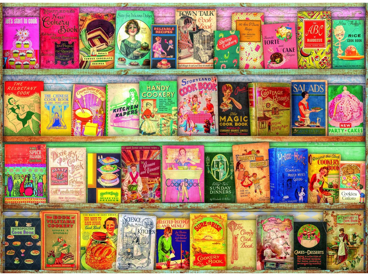 Ilustrația acestui puzzle este una plină de culoare și detalii, reprezentând coperți de cărți din epoci diferite legate de arta culinară. Fiecare detaliu este realizat cu atenție, oferind o privire captivantă asupra evoluției designului grafic în domeniul cărților de gătit. Realizarea acestui puzzle va fi nu doar o provocare distractivă, ci și o oportunitate de a descoperi mai multe despre istoria și diversitatea rețetelor tradiționale.
